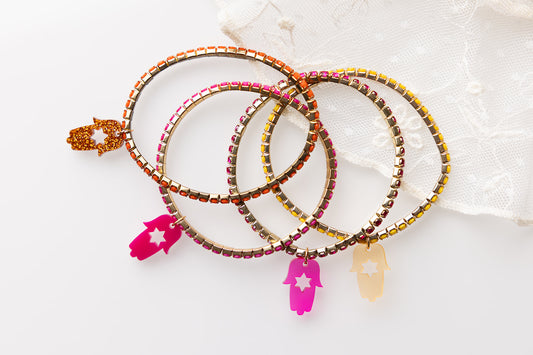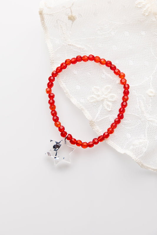Red Shira Beaded Stretchy Bracelet ( Charm Options! )