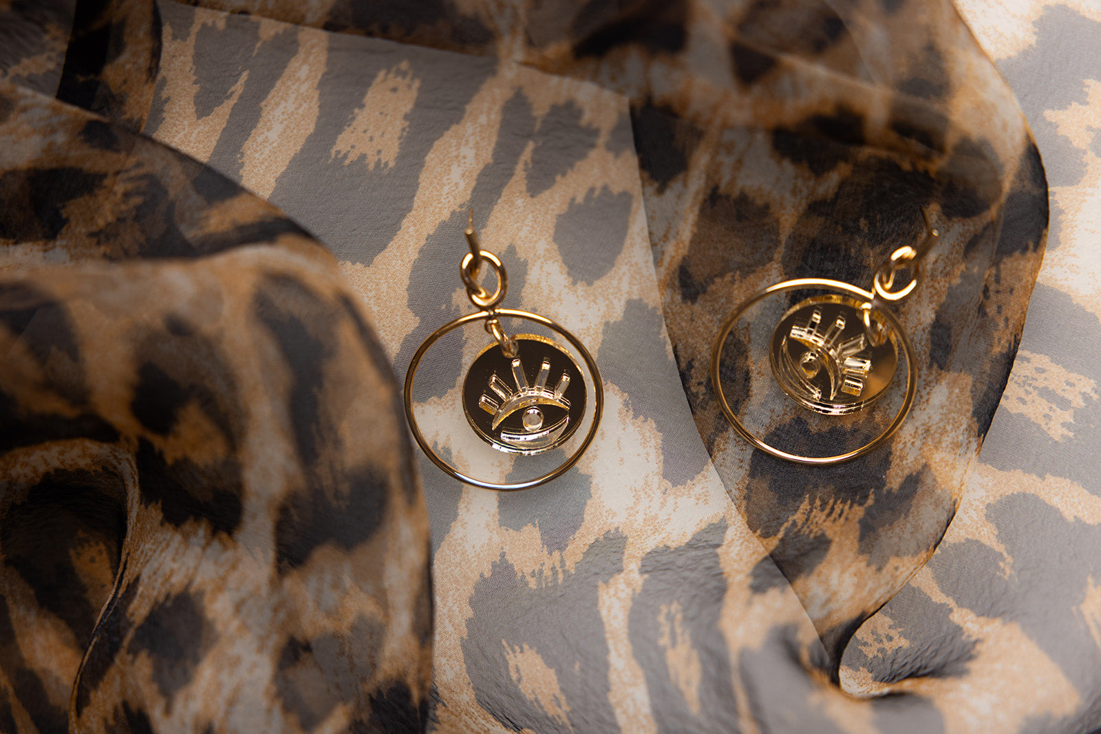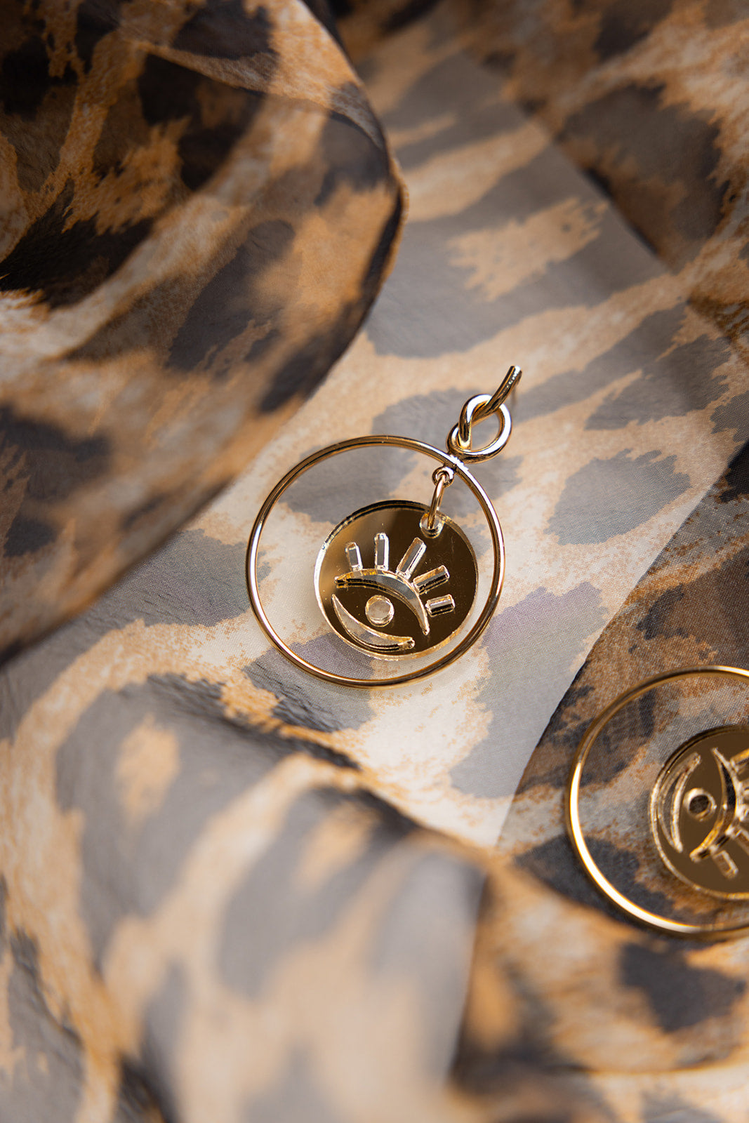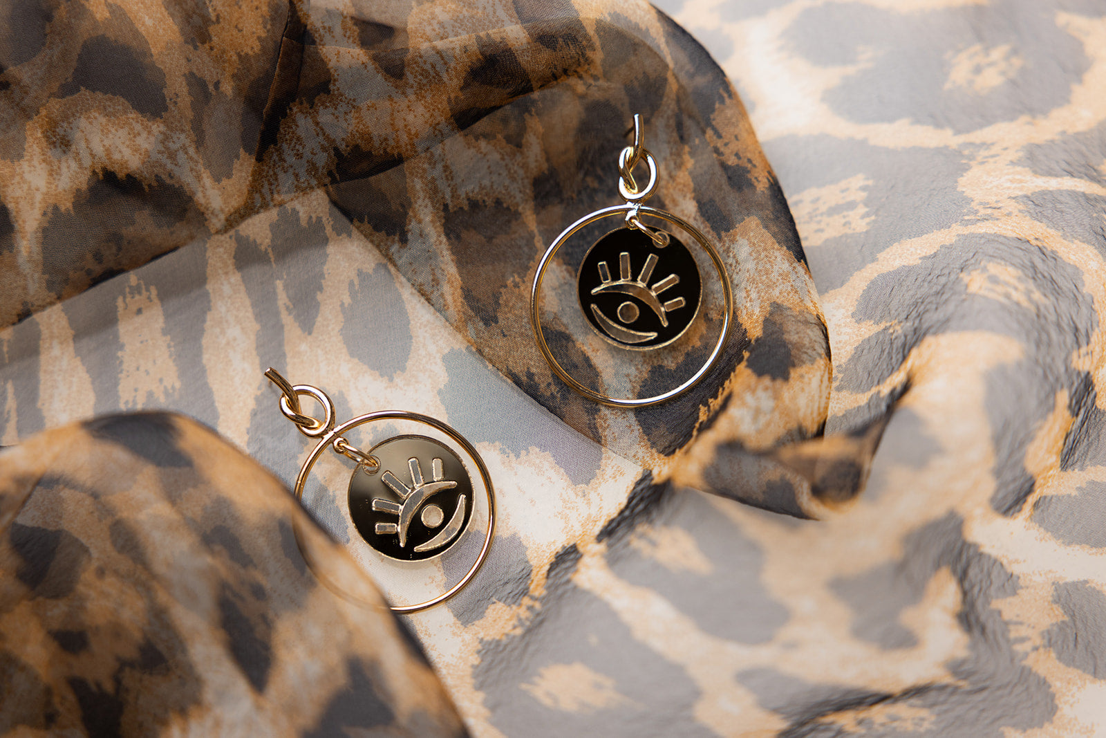 Add a high fashion touch to your look with the Aria Earrings—featuring an evil eye charm laser cut from gold mirror acrylic. These sleek, front-facing hoops combine modern minimalism with a dash of bold, making them a stylish ward against bad juju. Perfect for anyone who loves a subtle yet striking accessory that stands out.