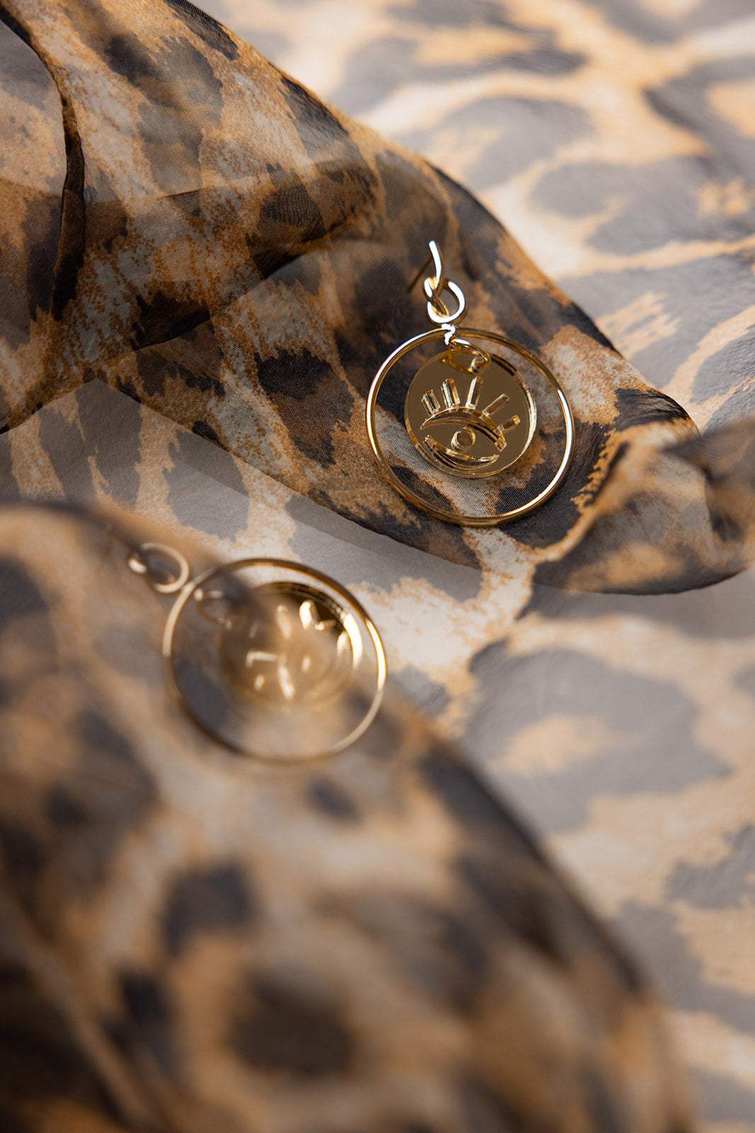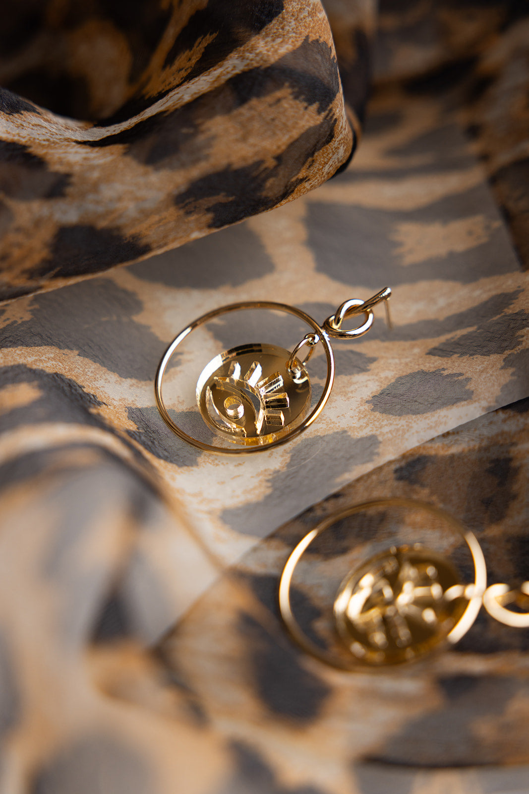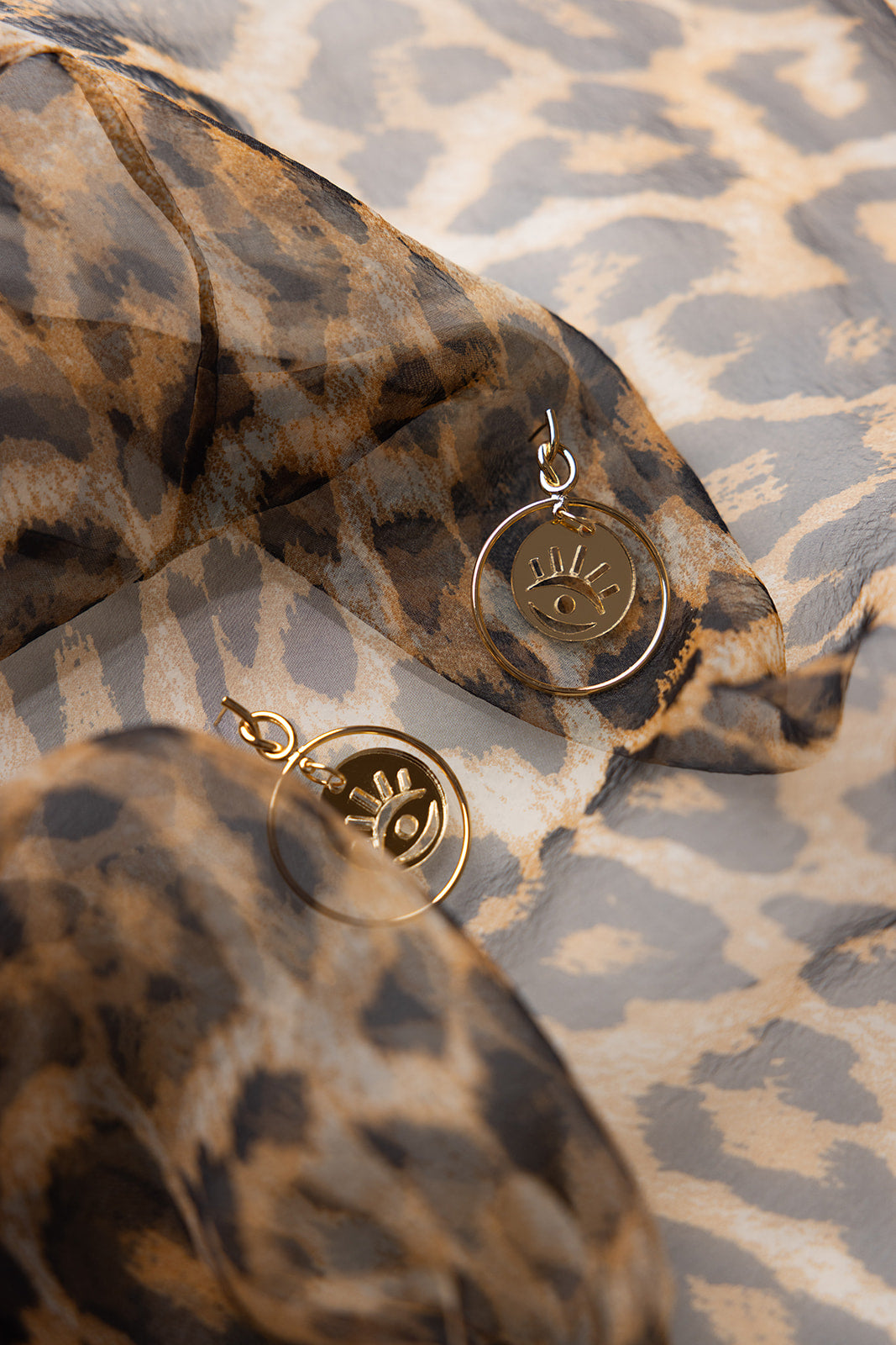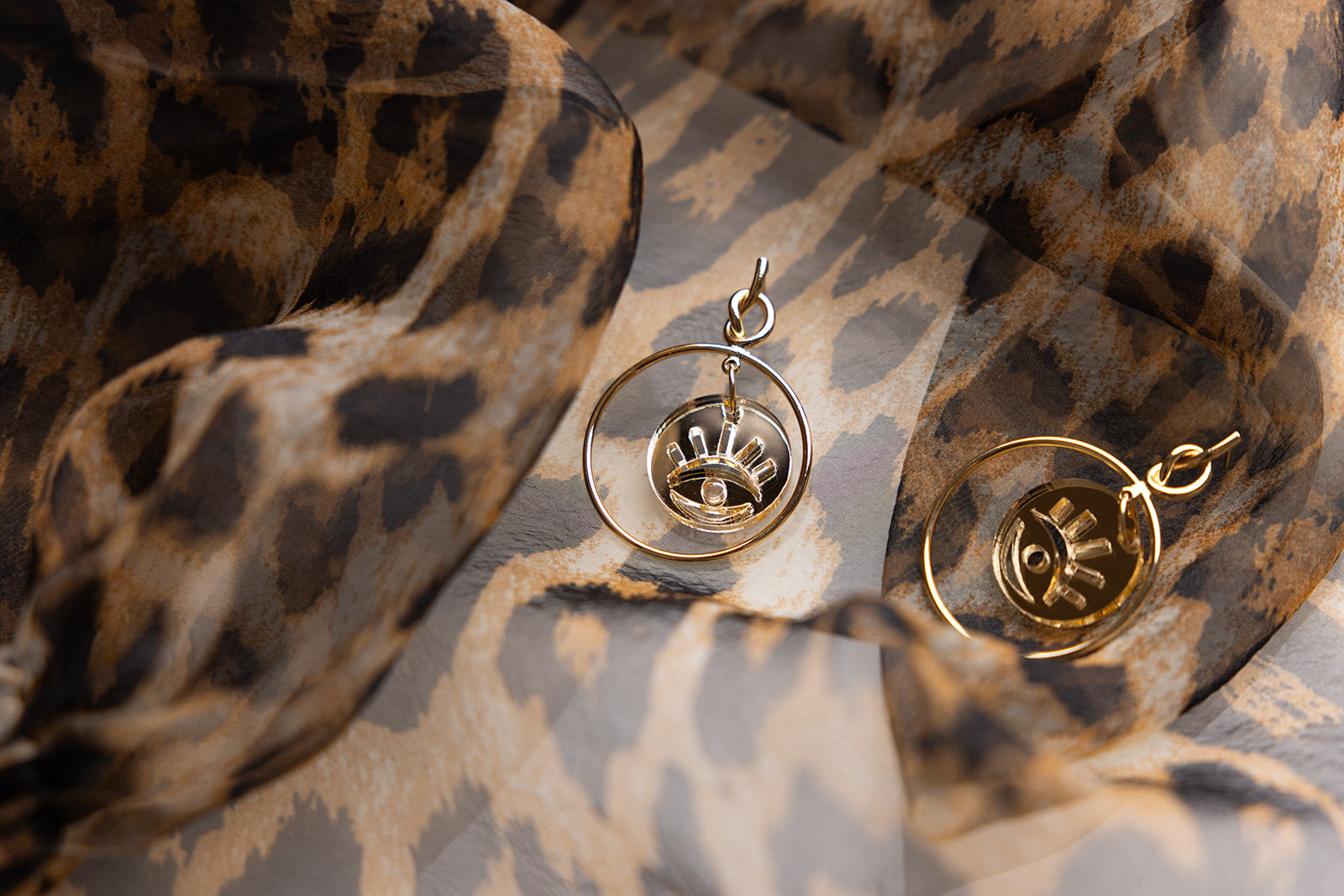 Add a high fashion touch to your look with the Aria Earrings—featuring an evil eye charm laser cut from gold mirror acrylic. These sleek, front-facing hoops combine modern minimalism with a dash of bold, making them a stylish ward against bad juju. Perfect for anyone who loves a subtle yet striking accessory that stands out.