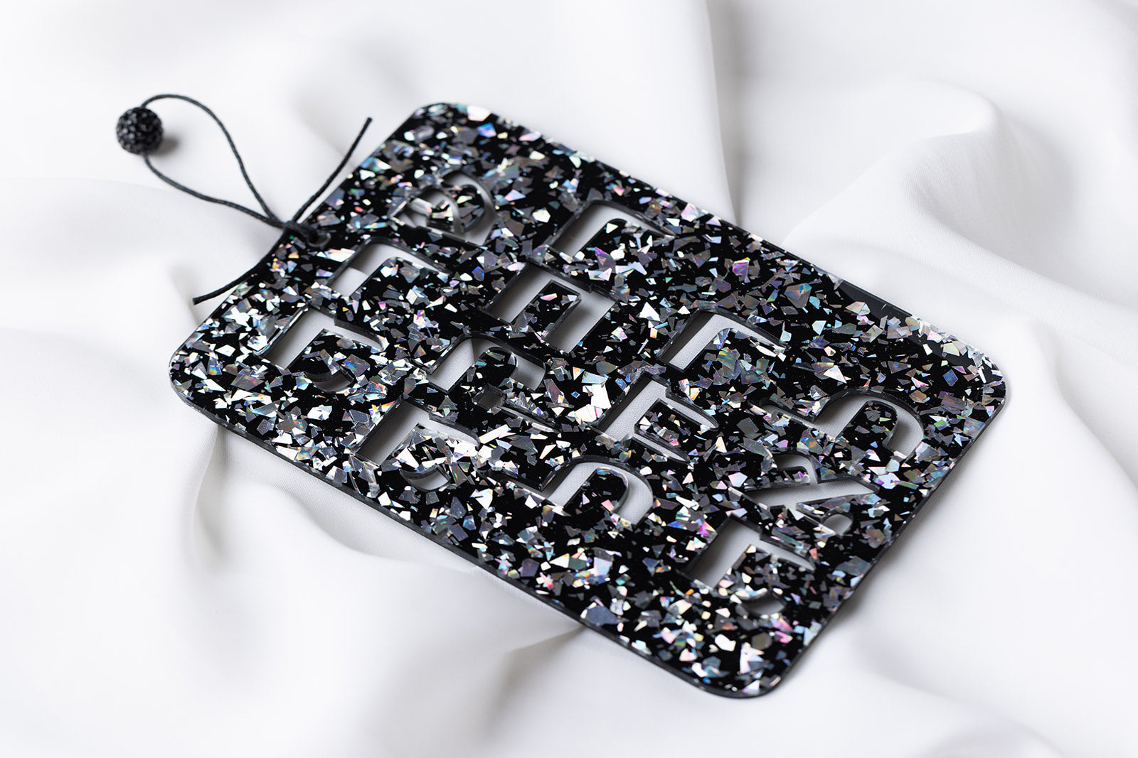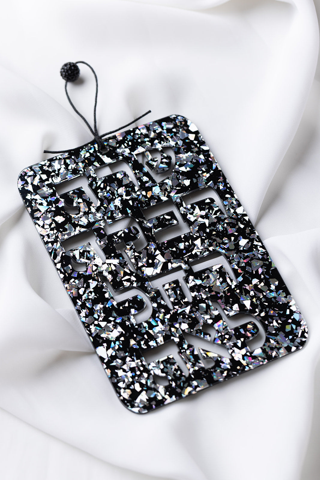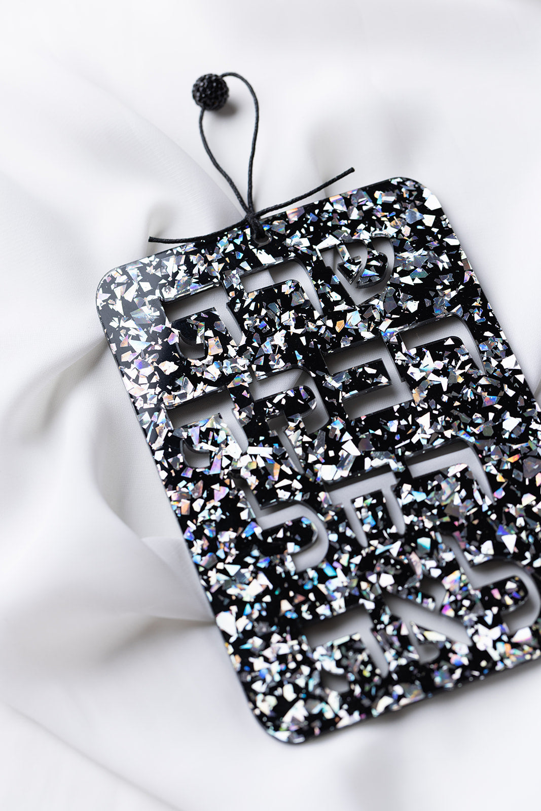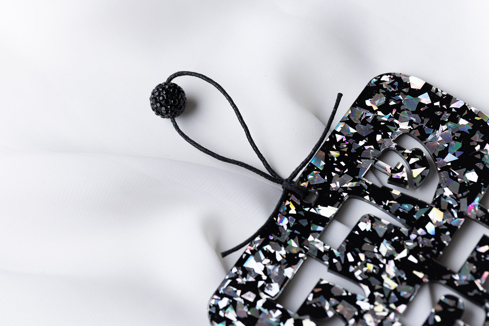 High Quality Acrylic. Waxed Cotton Cording. Blue Ice Glitter Features Swarovski Crystal Bead. Rose Gold Glitter features Glass Bead.