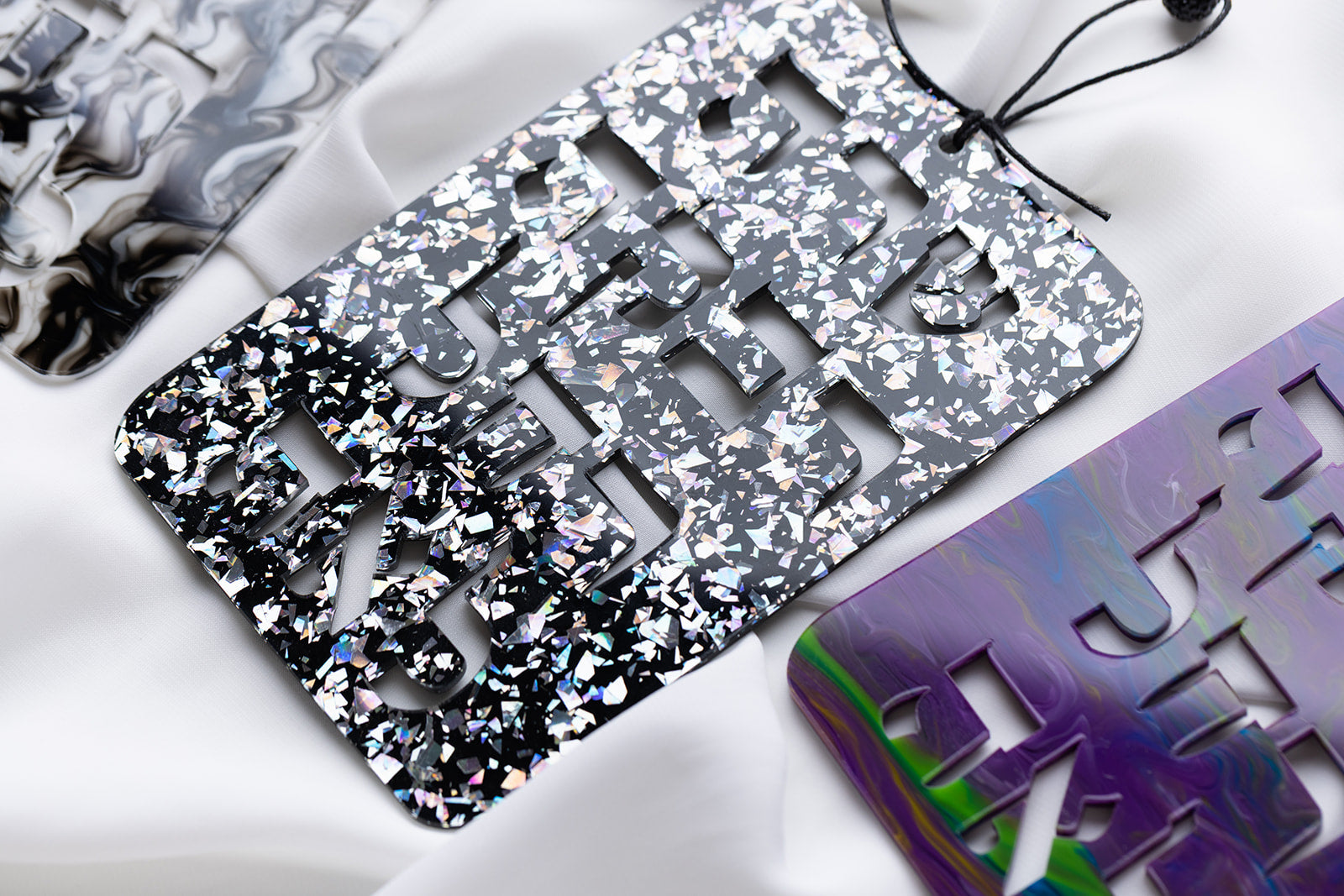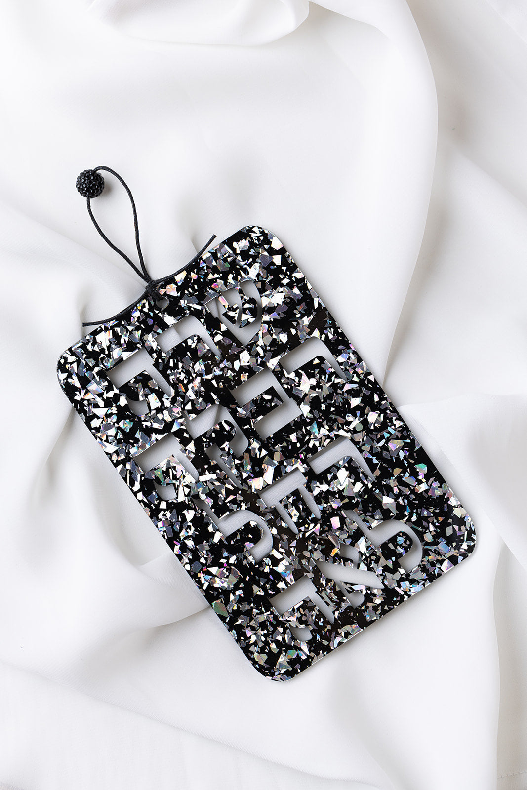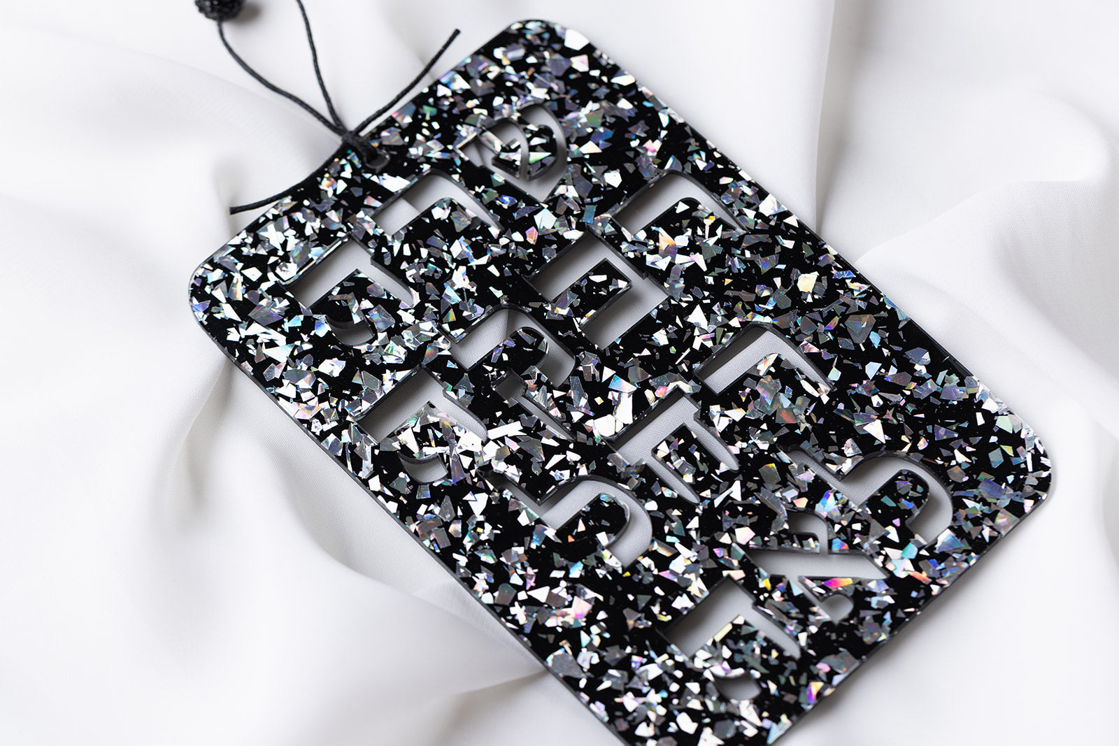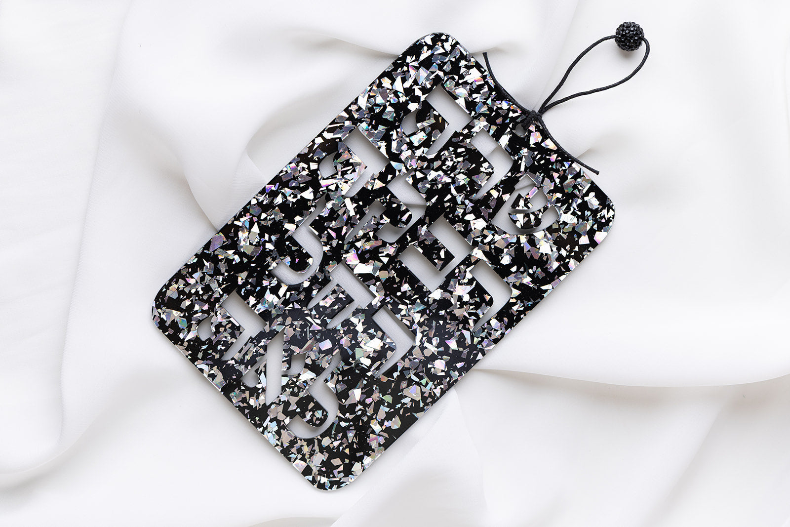High Quality Acrylic. Waxed Cotton Cording. Blue Ice Glitter Features Swarovski Crystal Bead. Rose Gold Glitter features Glass Bead.