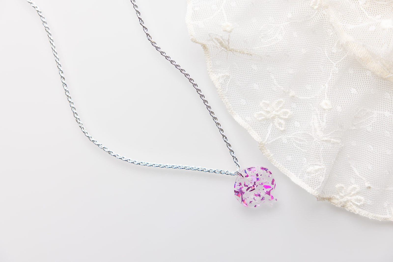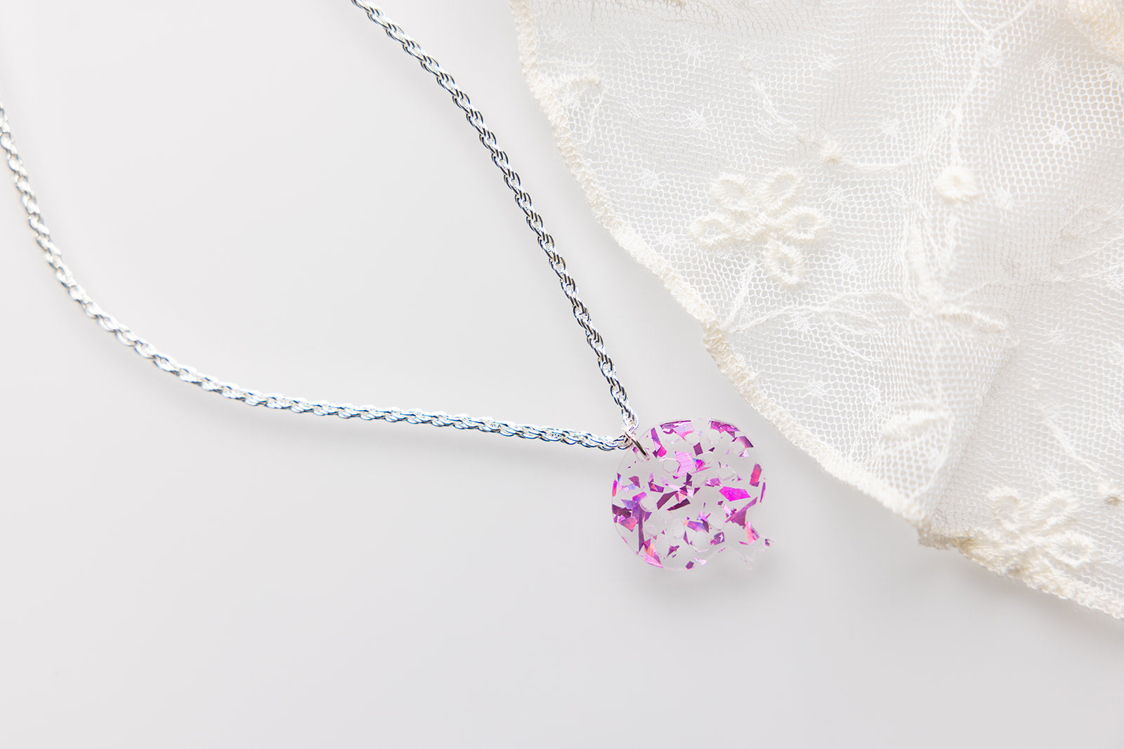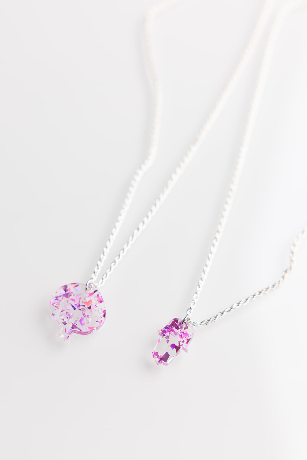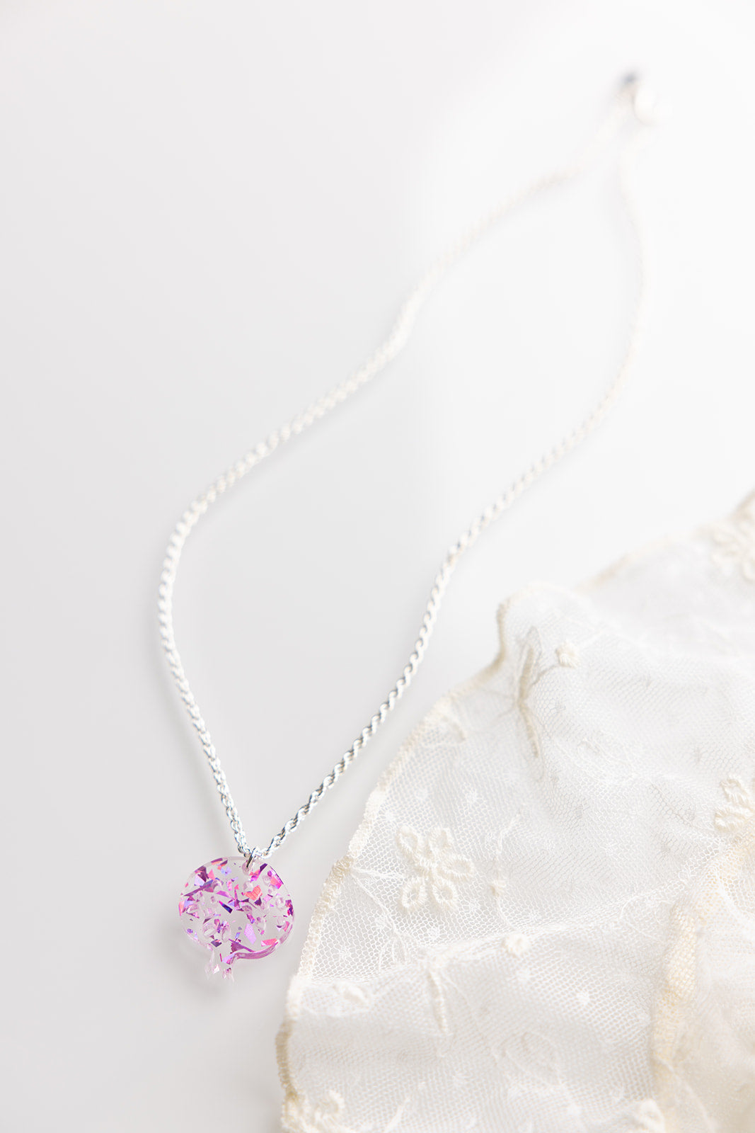 Add a touch of charm with the Yael Necklace, featuring a sleek silver-plated rope chain and a playful pomegranate pendant. Part of our new collection, it offers the same captivating style as our other necklaces but in a more affordable metal. Choose between a shimmering holographic pink fleck or a sparkling silver fleck pomegranate charm to suit your vibe and bring abundance to your day to day.